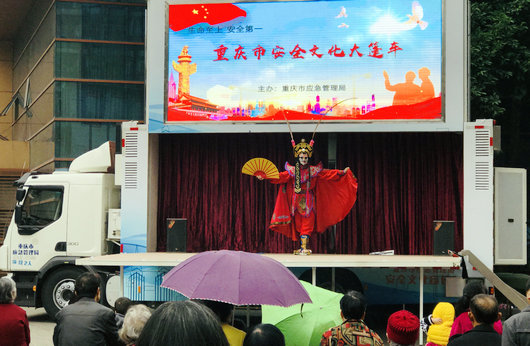自今年6月以来,“安全文化大篷车”分别在北碚区、永川区、南岸区、高新区、九龙坡区、沙坪坝区、璧山区、江北区等区县开展巡回演出40余场,宣传受众达1.2万余人。