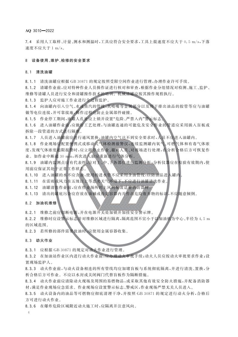 AQ 3010—2022 加油站作业安全规范