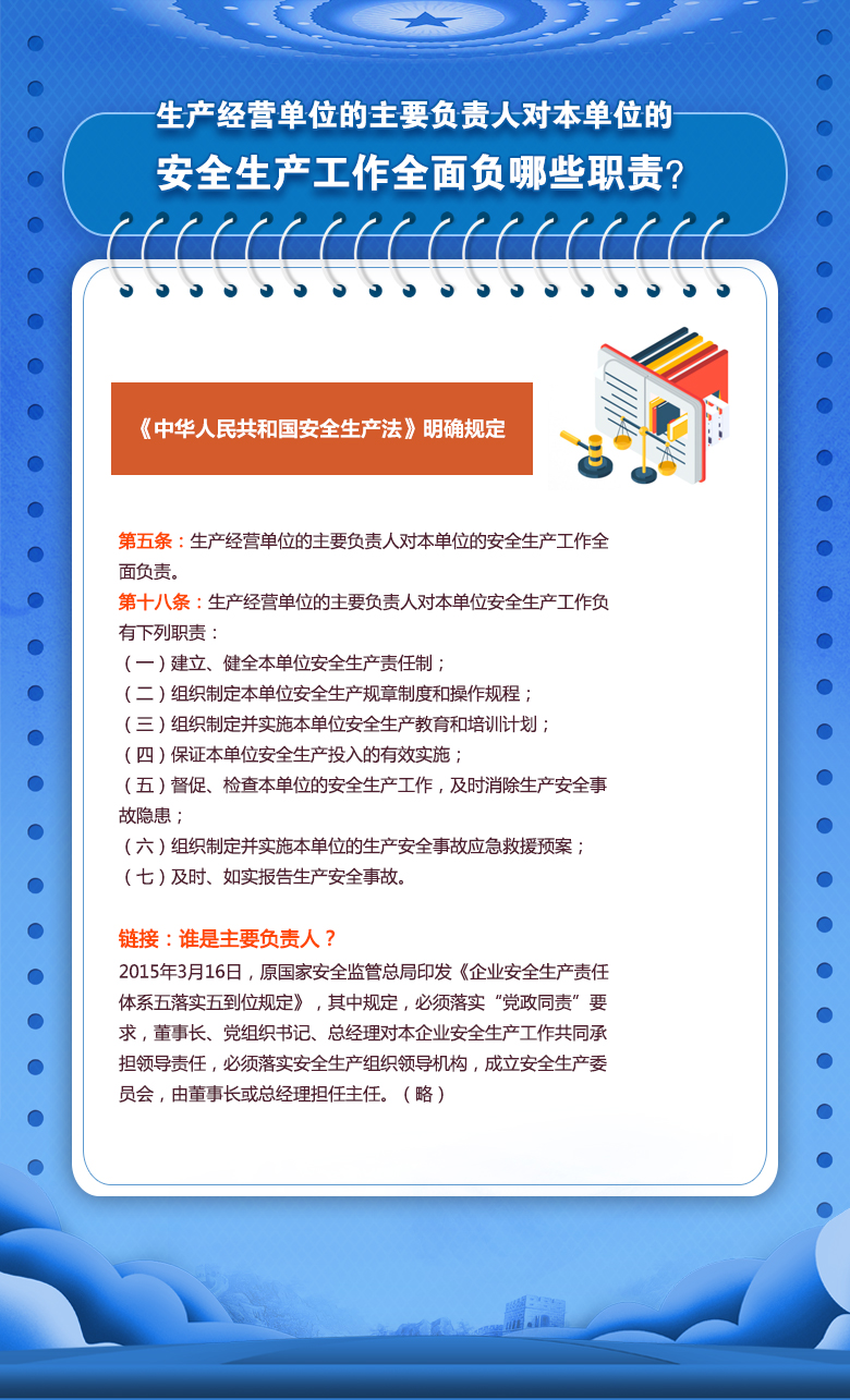 生产经营单位的主要负责人对本单位的安全生产工作全面负哪些职责?